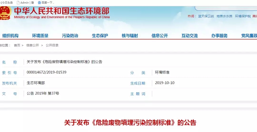 關(guān)于發(fā)布《危險廢物填埋污染控制標(biāo)準(zhǔn)》的公告