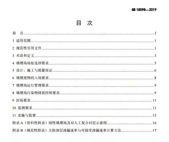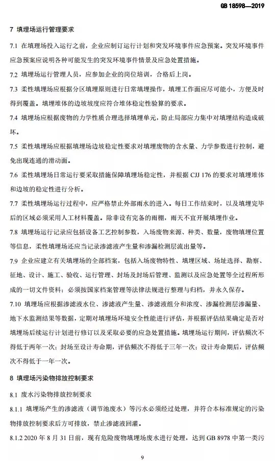 危險廢物填埋污染控制標(biāo)準(zhǔn)